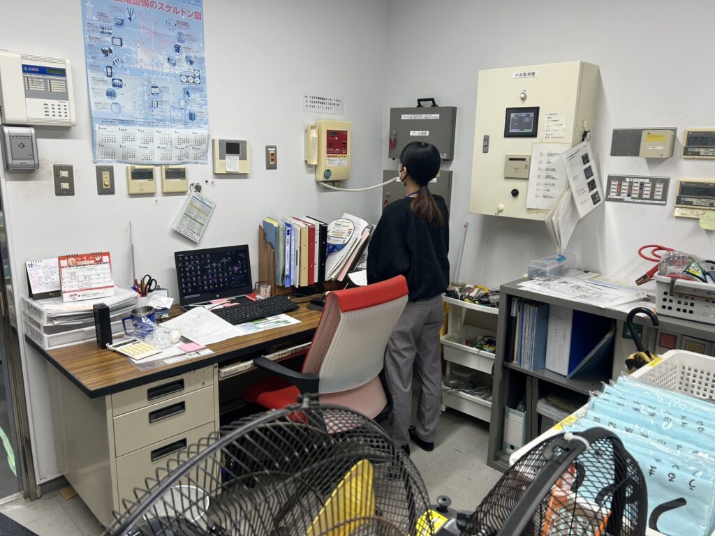 合同会社うるま防災様より、3階多目的ホールや駐車棟などの防火・消火設備の説明を受けた。