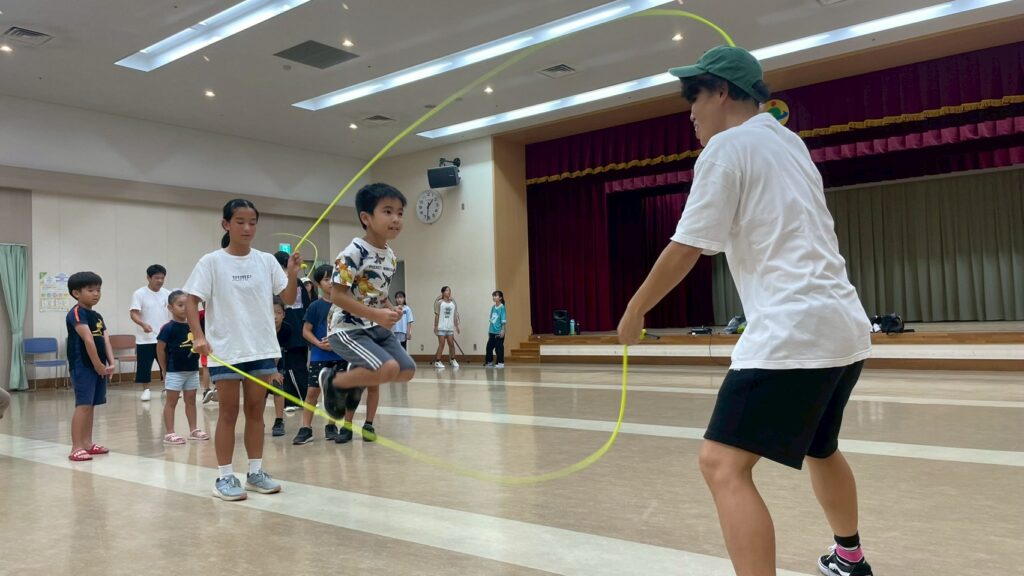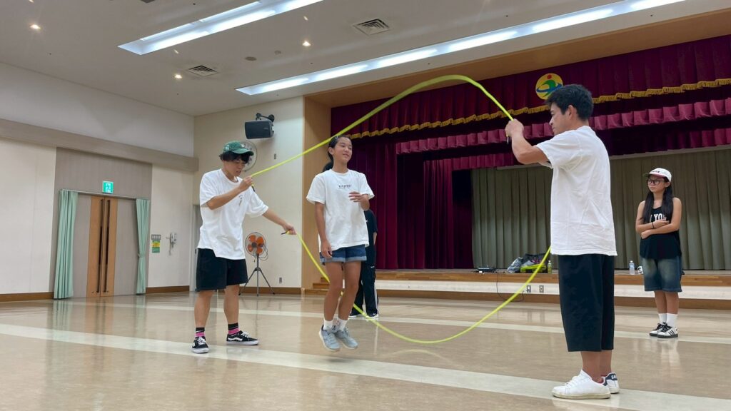 経験者の子ども達はパフォーマンスを取り入れたり、ジャンプに独特なステップを混ぜたり、未経験者の子ども達はジャンプのリズムから教えてもらいました。