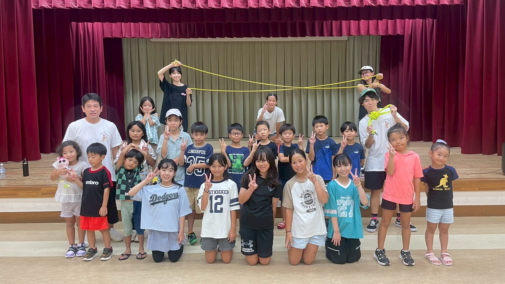 その後、ダブルダッチのポイントや跳び方のコツなどを教えていただき、子ども達は早速2グループ(経験者と未経験者)に別れてみんなでチャレンジ!!